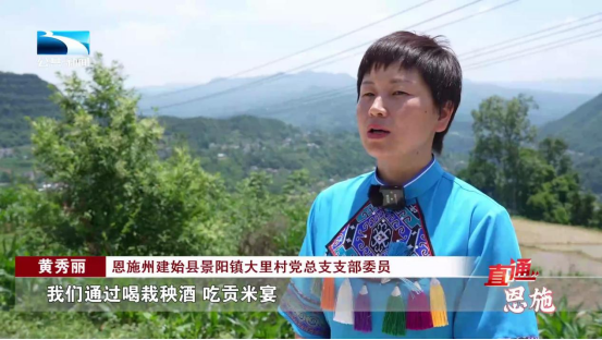恩施州建始县景阳镇大里村党总支支部委员 黄秀丽:“我们通过喝栽秧酒,吃贡米宴,凝聚了群众的民心,能够吸引更多的游客来品大里贡米,赏大里风光,体验农耕文化。”