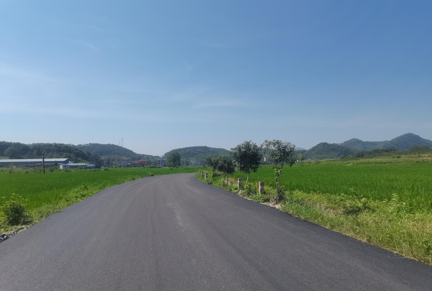 近日,湖北阳新上余村施工现场一片繁忙,村主干道正在进行全面升级改造,铺设柏油路面。