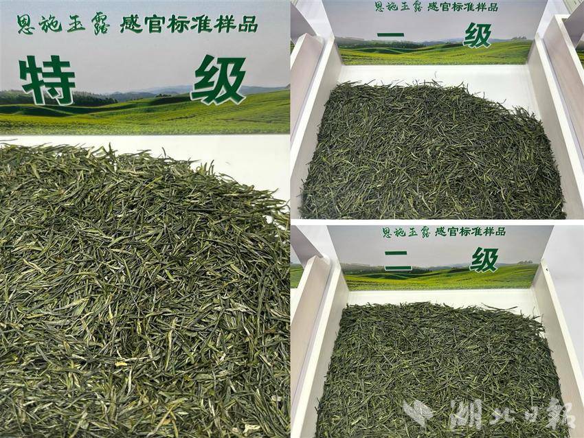 “外形最直观,让消费者对标茶样,能区分等级。”湖北省茶叶学会秘书长、省农科院果茶所研究员郑鹏程介绍,干茶的形态、冲泡出茶汤的颜色,让人可视、可感。实物标准样让外形、汤色、香气、滋味、叶底等5类感官体验更明确,各品级茶叶外形、汤色、叶底的对比图片将向全社会公开展示。