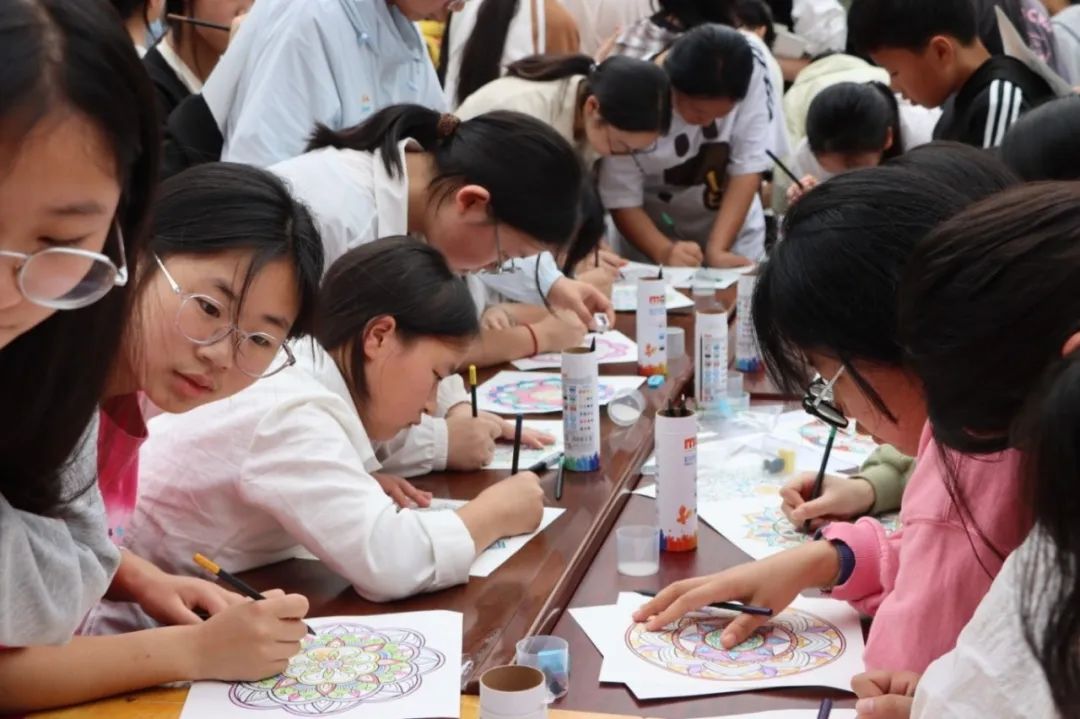 活动从上午9点持续到晚上18点,校园各处化身为充满惊喜的游戏乐园。在建南民中的操场上,“心理知识竞赛”将心理知识变成生活中的小常识,和同学们如影随形。“优秀心理手抄报”以及“曼陀罗绘画”让学生静下心来将内心想要表达的事情融入绘画中,并用颜色释放自己的不良情绪使学生拿起画笔做自己的心理能量师。