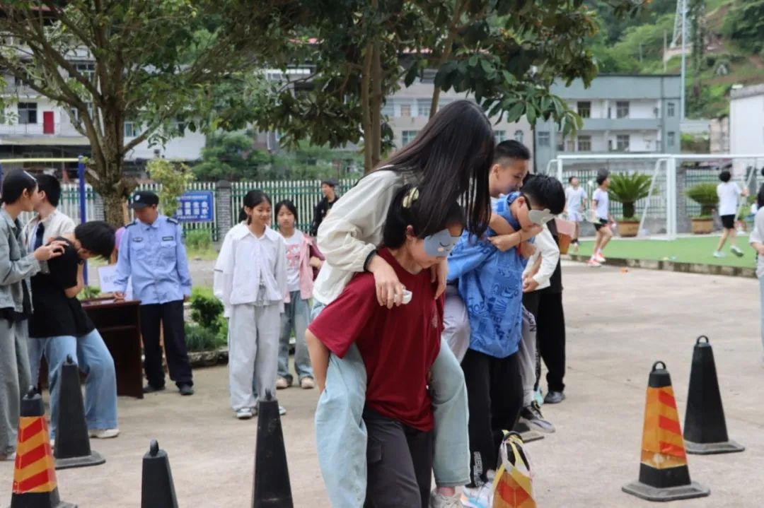 信任是人与人交往的前提,有良好的人际沟通,也有益于心理健康。在“驿站传书”与“双人穿越地雷阵”信任游戏活动中,蒙眼的同学背着同伴,靠着同伴的声音指引穿越障碍物,不少同学非常有默契的组合顺利通关,收获围观同学的掌声。这场挑战不仅考验配合,更让同学们在扶持中感受到满满的信任与温暖。