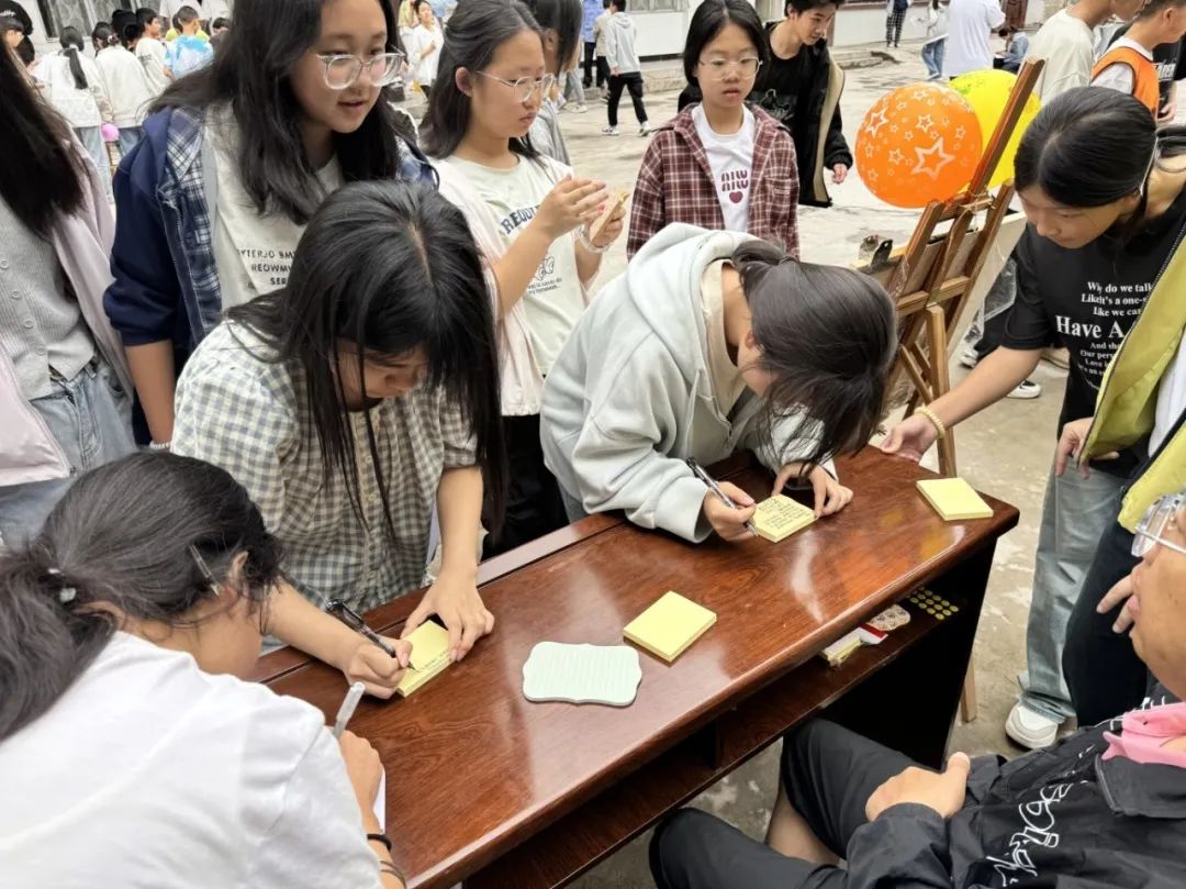 除了丰富多彩的游戏,活动还设置了“树洞信箱·写你的烦心事”、“祝福墙·毕业季的祝愿”“感恩墙”“收获站” 、“微笑之音·现场快乐拍照”等打卡点,以及神秘隐藏活动。学生们带着欣喜愉悦期待的笑容在每个打卡点收集微笑章,每一个印章都是欢乐与知识的见证。当集满印章来到抽奖区兑换奖品时,大家脸上都洋溢着满足的笑容,书签、创意文具等奖品,让这份快乐加倍。