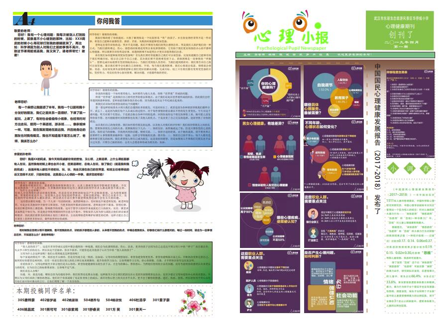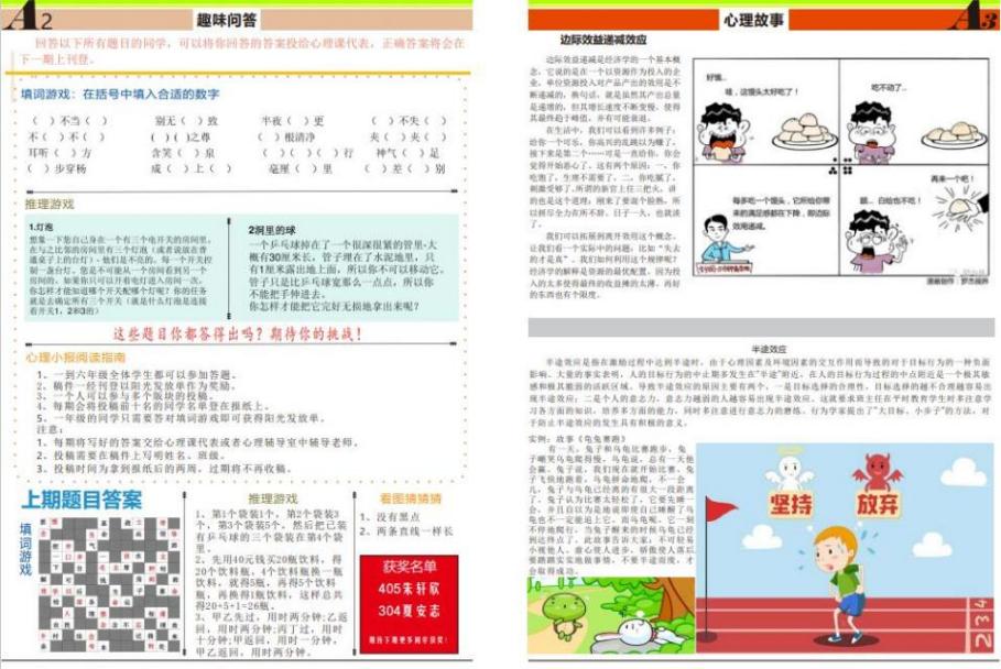 目标:借助心理小报向所有师生传播心理健康知识,搜集师生中存在的心理健康方面的问题,提供一个心理健康宣传的抓手,给孩子们参与到心理健康活动的一个平台。