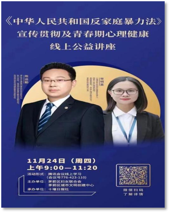 2.中学生的心理问题及应对策略——家长课堂(2023年5月22日,十堰京中实验学校、太和医院联合在校内报告厅组织开展,参与人数300人)。