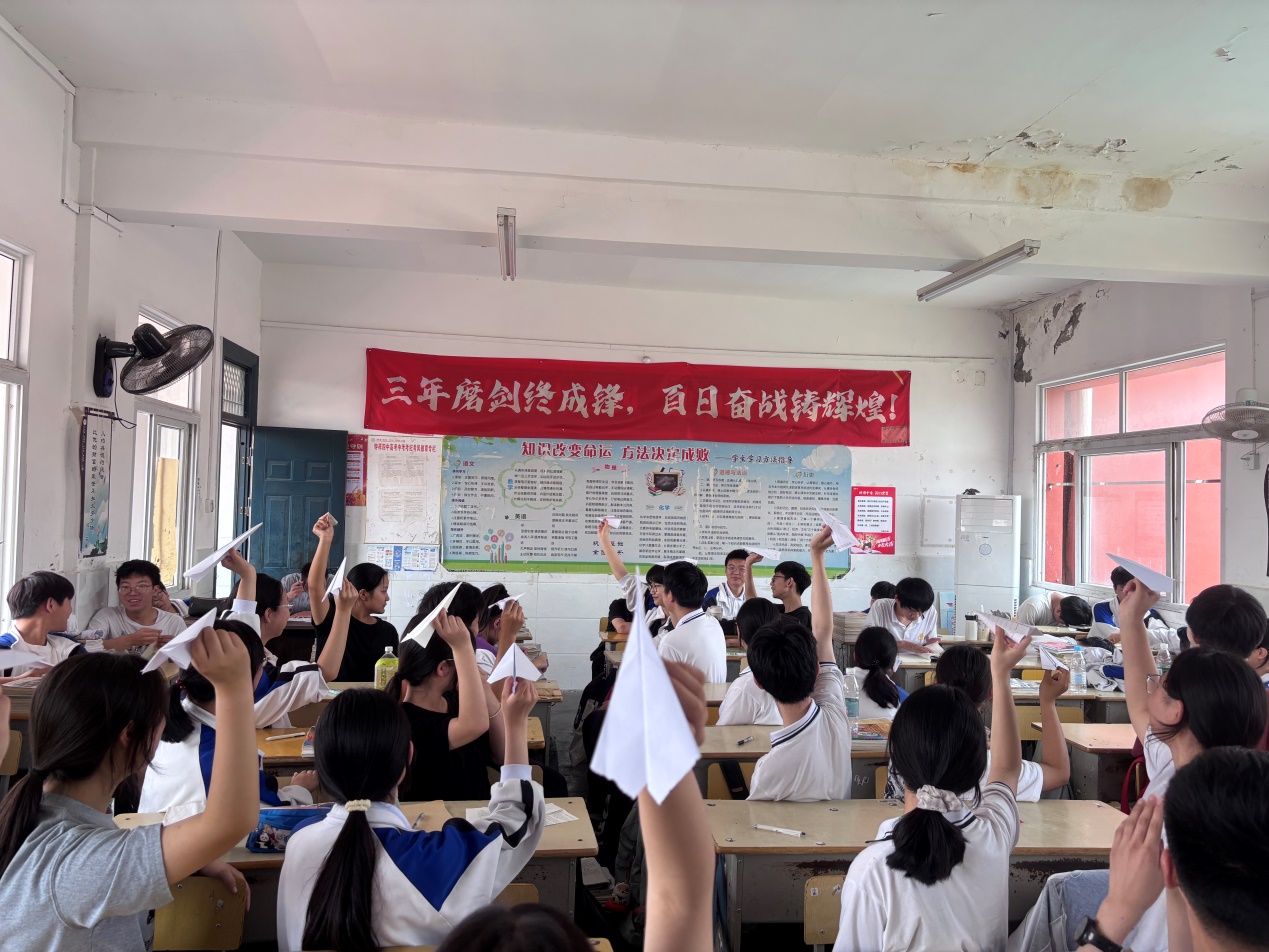 活动尾声,班主任寄语同学们:“这飞走的纸飞机,象征着你们主动释放的压力。希望这一刻的轻松与欢笑,能成为你们冲刺路上的能量补给。记住,学会放下包袱,才能跑得更快、跳得更高!” 同学们纷纷表示:“这个活动好玩又解压,看着飞机飞走,心里真的感觉轻松了不少,和大家一起喊出来、放飞的感觉很棒!”