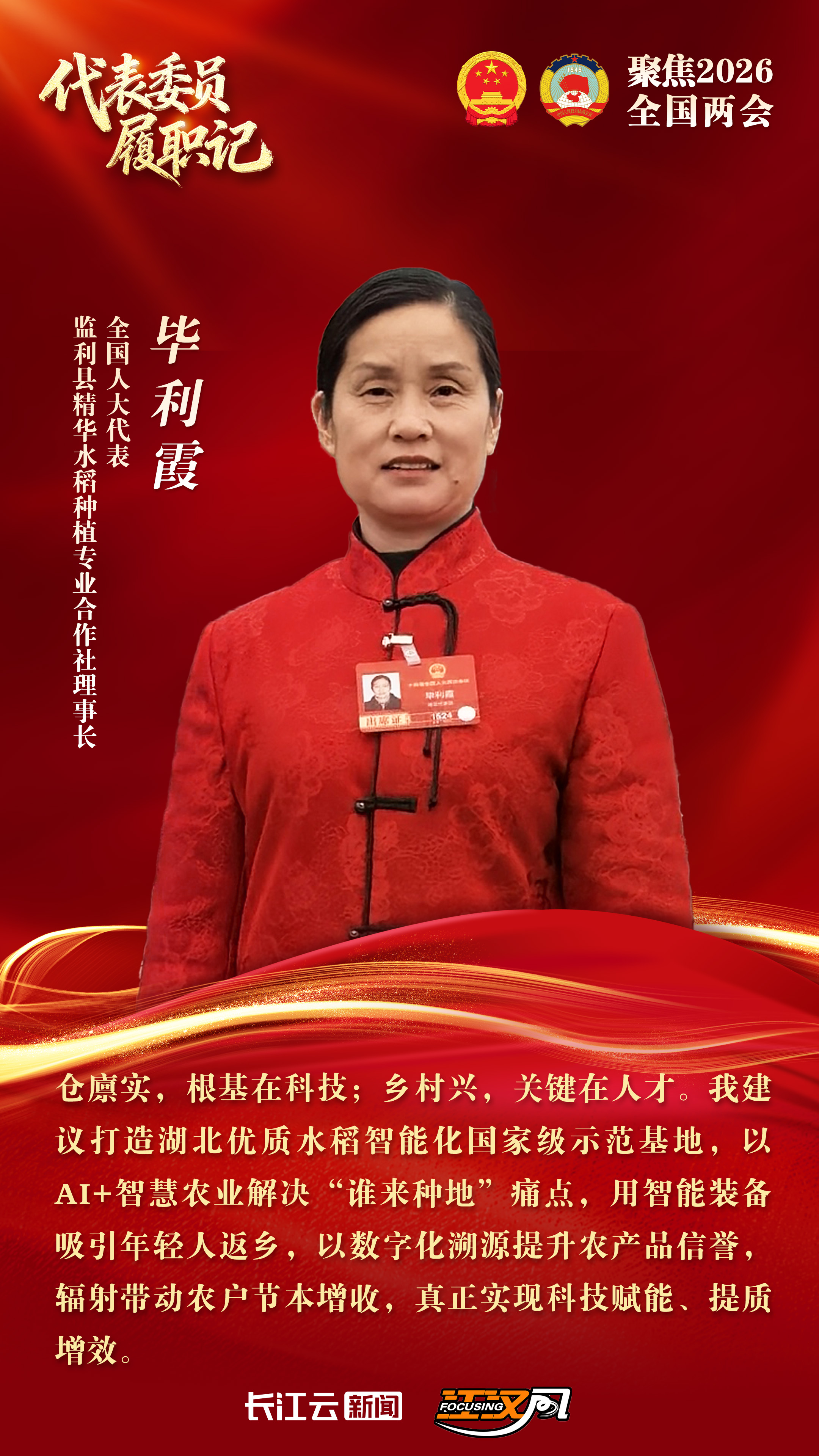 全国人大代表、监利精华水稻种植专业合作社理事长 毕利霞