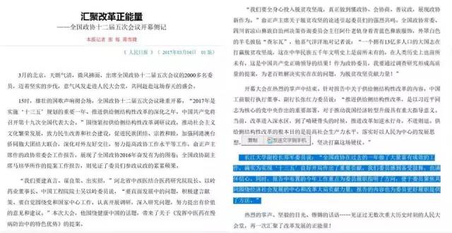 在《汇聚改革正能量——全国政协十二届五次会议开幕侧记》中,长江大学副校长郑军委员点赞今年的政协工作报告。