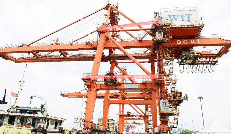 图为阳逻港国际集装箱码头一片繁忙 新华网 欧阳小洁摄