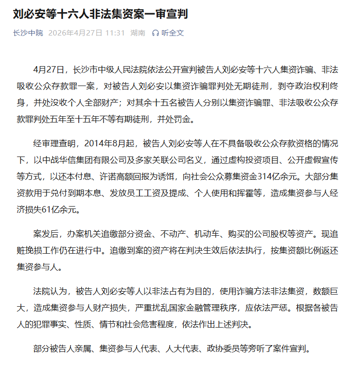 刘必安等十六人非法集资案一审宣判