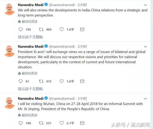 莫迪总理在微博中说,这次会谈广泛而富有成效。