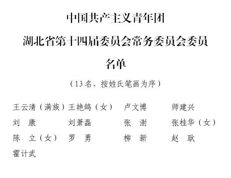 2月2日下午,共青团湖北省第十四届委员会举行第一次全体会议,选举产生共青团湖北省第十四届委员会书记、副书记、常务委员会委员。