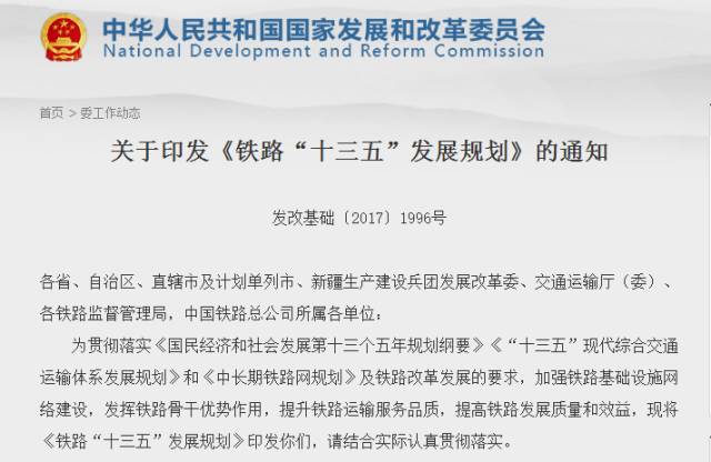 你家乡的铁路, 有最新消息了, 而且,超劲爆! 11月24日,国家发改委在官网重磅发布《铁路“十三五”发展规划》。