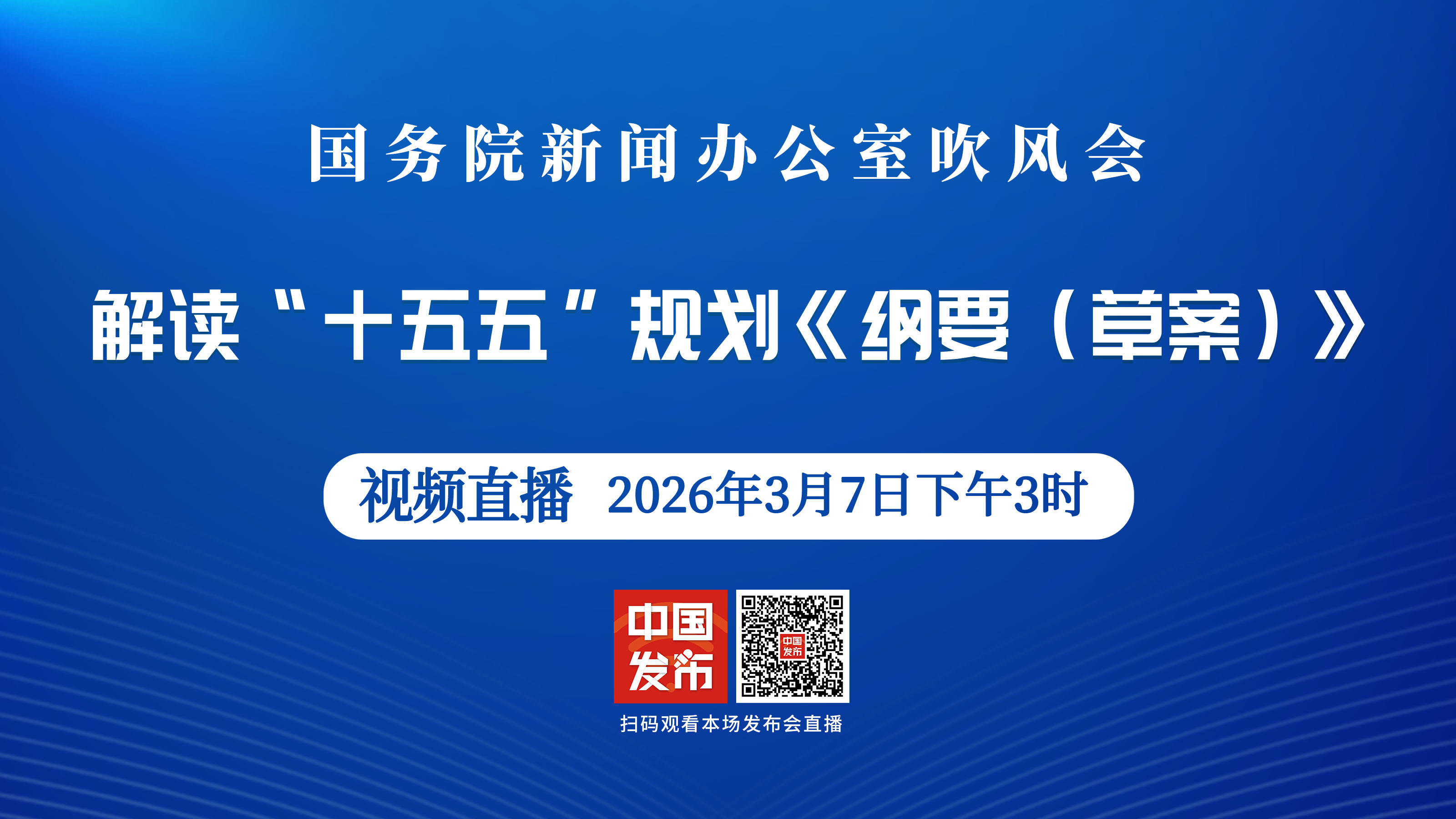国务院新闻办公室于2026年3月7日(星期六)下午3时举行吹风会,请国家发展改革委副主任郑备解读“十五五”规划《纲要(草案)》,并答记者问。