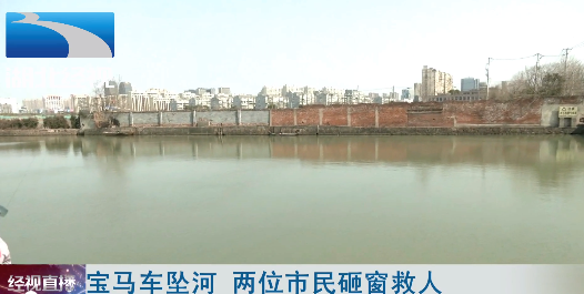 宝马车坠河 两位市民砸窗救人