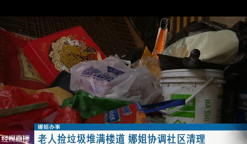 老人捡垃圾堆满楼道 娜姐协调社区清理