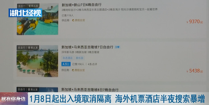 1月8日起出入境取消隔离 海外机票酒店半夜搜索暴增