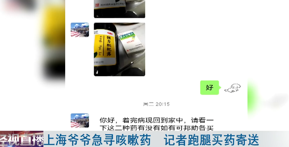 上海爷爷急寻咳嗽药 记者跑腿买药寄送
