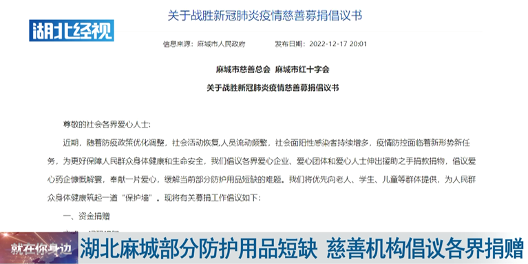 湖北麻城部分防护用品短缺 慈善机构倡议各界捐赠