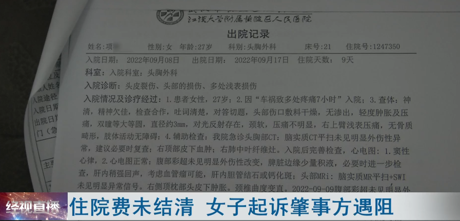 住院费未结清 女子起诉肇事方遇阻