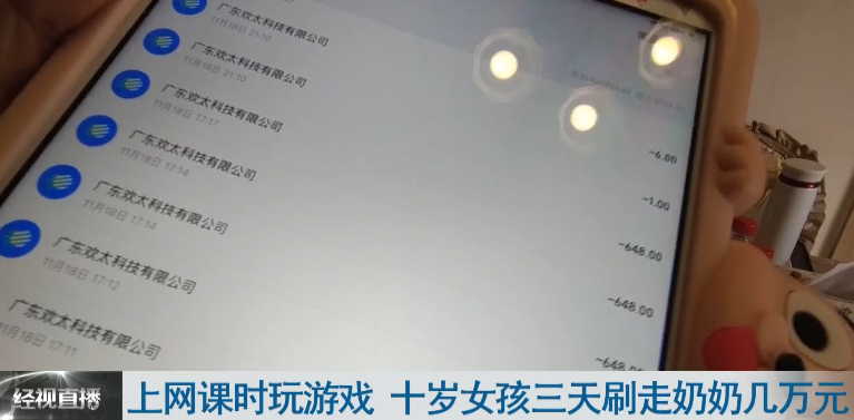 上网课时玩游戏 十岁女孩三天刷走奶奶几万元