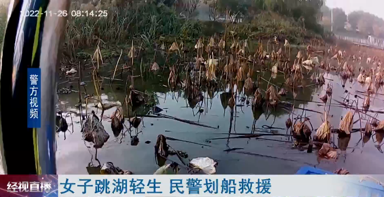 女子跳湖轻生 民警划船救援