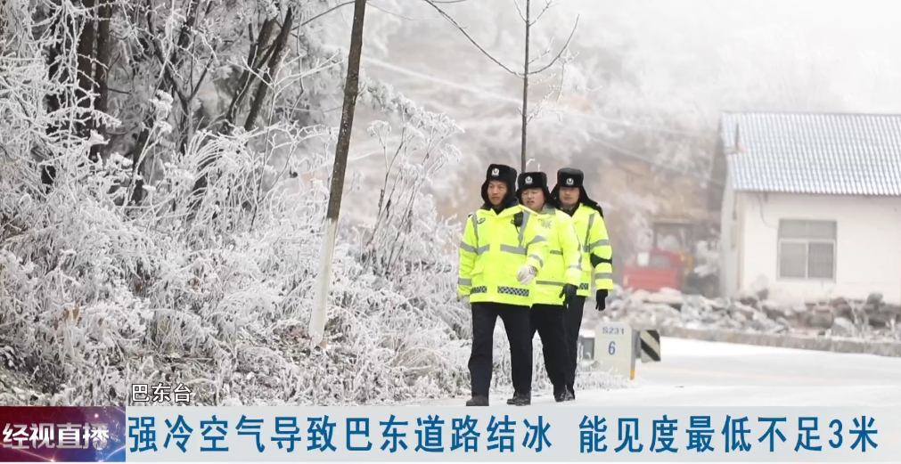 强冷空气导致巴东道路结冰 能见度最低不足3米
