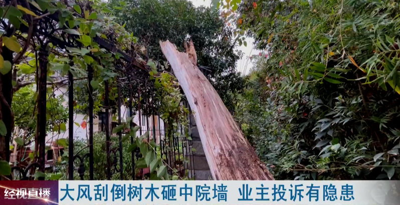 大风刮倒树木砸中院墙 业主投诉有隐患