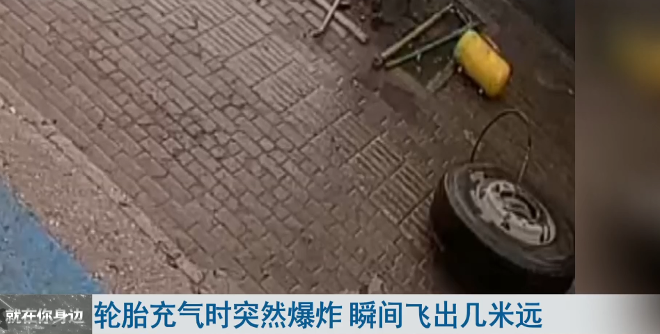 轮胎充气时突然爆炸 瞬间飞出几米远