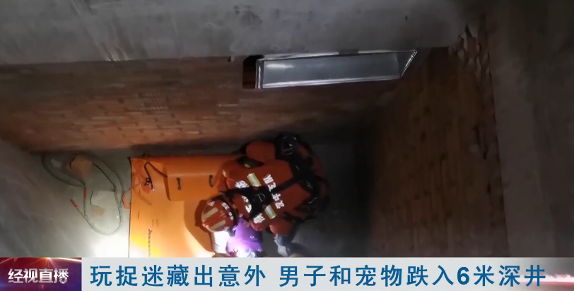 玩捉迷藏出意外 男子和宠物跌入6米深井