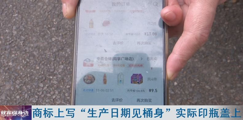 商标上写“生产日期见桶身”实际印瓶盖上