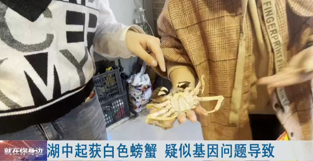 湖中起获白色螃蟹 疑似基因问题导致