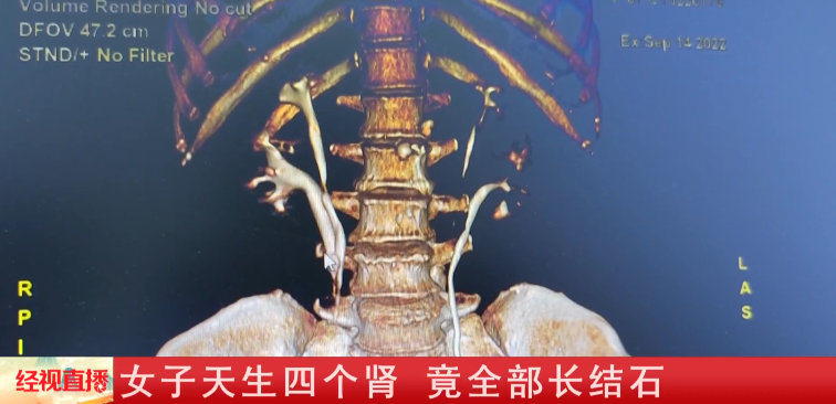 女子天生四个肾 竟全部长结石