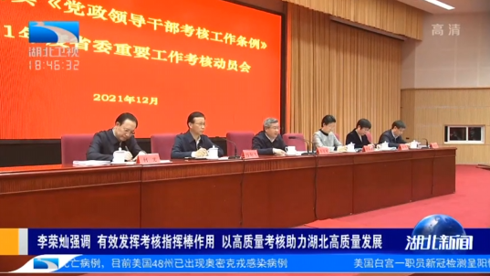 12月21日,湖北全省深入贯彻落实《党政领导干部考核工作条例》暨2021年度省委重要工作考核动员会在汉召开。