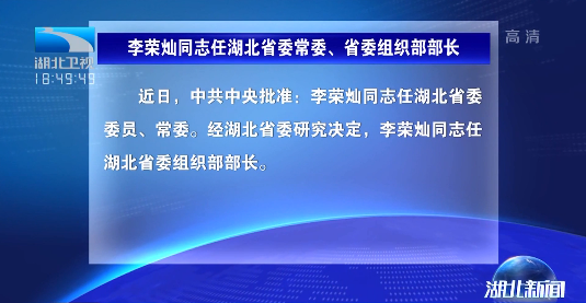 近日,中共中央批准:李荣灿同志任湖北省委委员、常委。经湖北省委研究决定,李荣灿同志任湖北省委组织部部长。