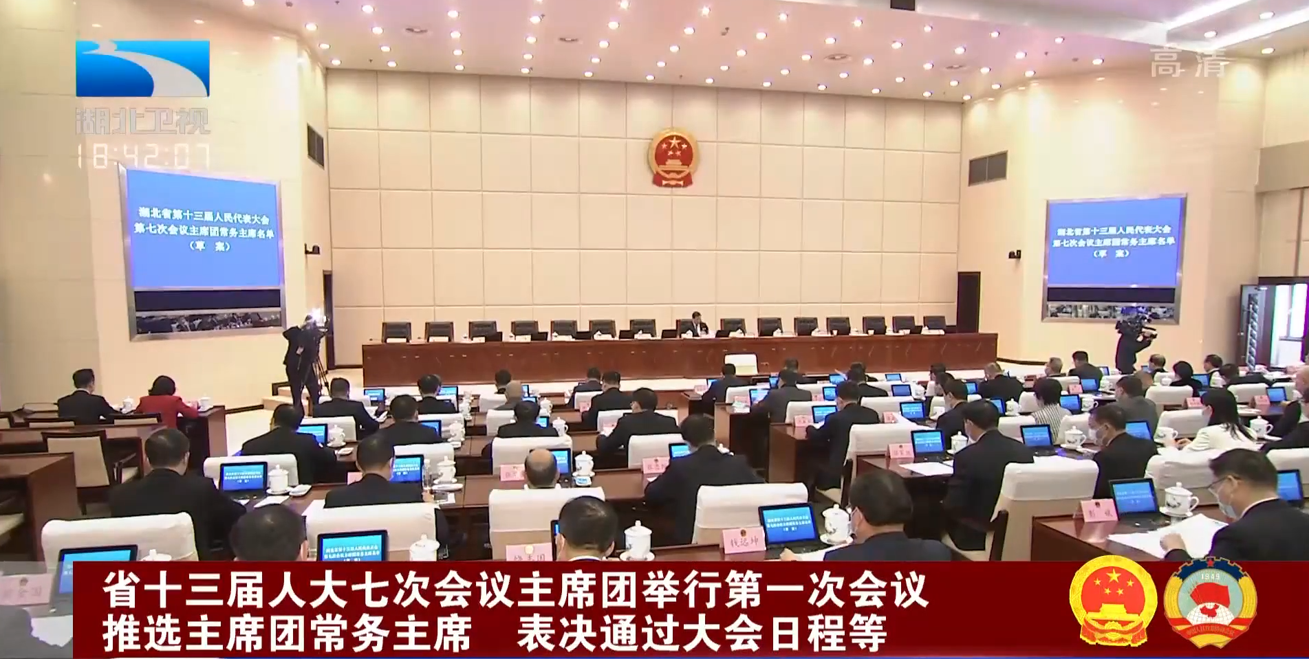 1月19日下午,省十三届人大七次会议主席团在武昌举行第一次会议。