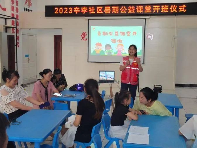 7月6日上午,当《志成学子之歌》再次响起,孩子们陆续到达辛李社区站点,社工陆明红结合PPT为家长和儿童强调课堂公约、安全问题以及班规纪律;朝气蓬勃的大学生志愿者放弃原本可以休闲的假期,成为一名光荣的支教老师,陪伴社区儿童共同开启公益之旅。