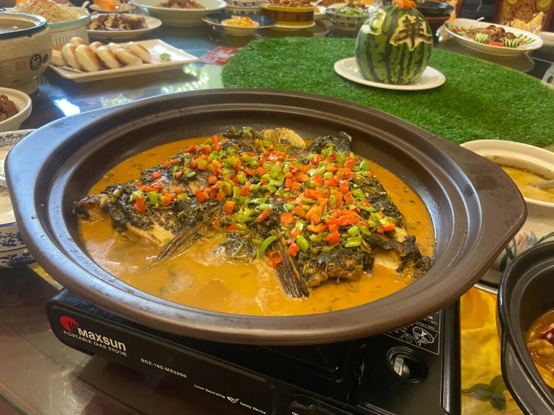 正午,必打卡安陆地道的“乡愁味”。白花菜烧鱼头鲜辣开胃,白花菜炒肉丝香气扑鼻,是名副其实的“米饭杀手”。当然,最不能错过的是让诗仙都赞不绝口的 “太白滑肉” 。最后以一碗用柴火灶煮出的、带着焦香的锅巴粥收尾。