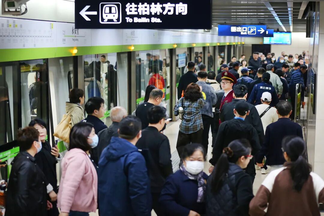 4日早上8时许,4号线永安堂站乘客有序通行。通讯员产启斗 摄