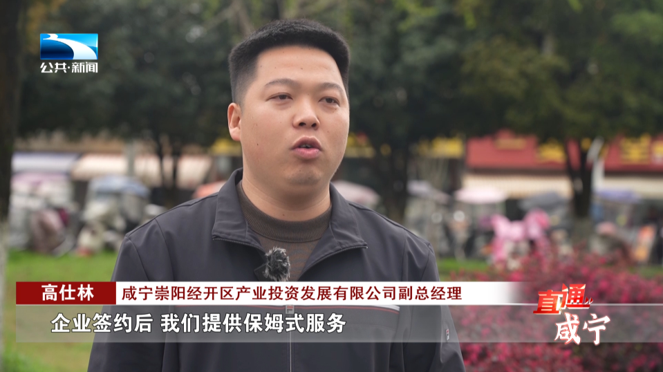咸宁崇阳经开区产业投资发展有限公司副总经理 高仕林:企业签约后,我们提供保姆式服务,一站式办理营业执照及环评、安监、消防等证照,并联合政府协同招工,解决企业用工难题,让企业在崇阳安心发展。