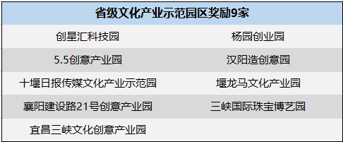 2017年9月5日至6日,在湖北省召开的文化产业工作会上,第三批湖北省文化产业示范园区(10个)和第六批湖北省文化产业示范基地(43个)授牌工作完成。