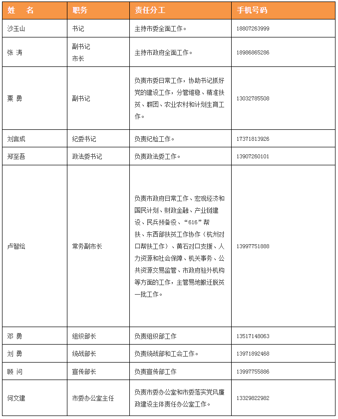 刚刚!湖北这个市公布了书记市长的手机号码 主要领导全公开(附号码)