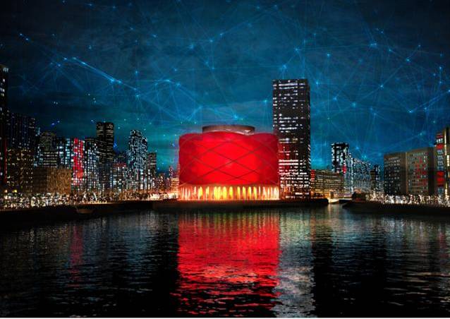 它坐落在武汉的楚河汉街最东端,有着靓丽鲜红的外表和喜庆的中国风造型,由已故的世界顶尖建筑艺术设计大师,北京奥运会、伦敦奥运会、广州亚运会开闭幕式艺术总监马克•菲舍尔先生亲自设计出来的艺术品。