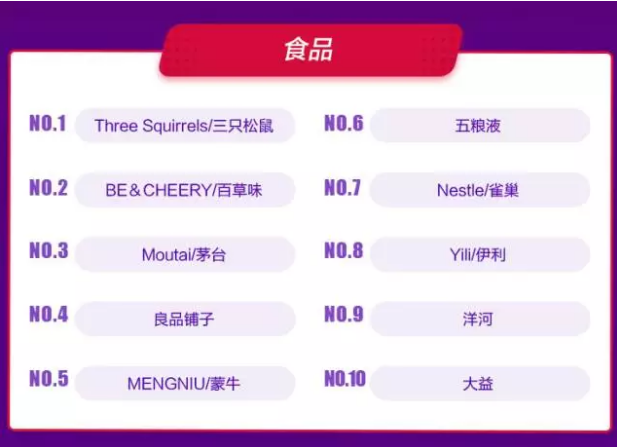 截至11日中午12点,良品铺子在食品类成交榜上排名第四