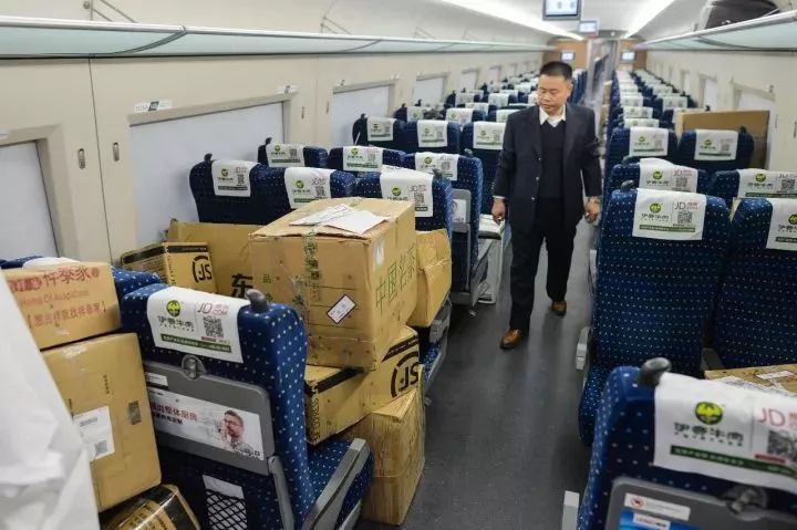 而在今天早上发出的高铁列车G510次14号车厢上,座位上“坐满了”当日凌晨刚刚下单的120余件包裹。这些商品从武汉站出发,以最高300公里的时速 “贴地飞行”,13时39分抵达北京西站后,部分买家当天即可收到网购商品。