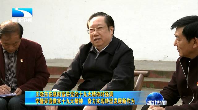 10月30日至31日,省委副书记、省长王晓东到襄阳市,向基层党员群众宣讲党的十九大精神。他强调,要学懂弄通做实十九大精神,奋力实现转型发展新作为。