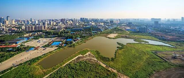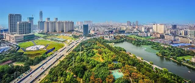 景观大道尽头,是武汉最大的人工水景公园,它叫梦泽湖公园,面积等于3.5个洪山广场,地铁3号线从湖底穿过。湖水来自人工收集的雨水,水生植物群维持它一年四季循环不枯;