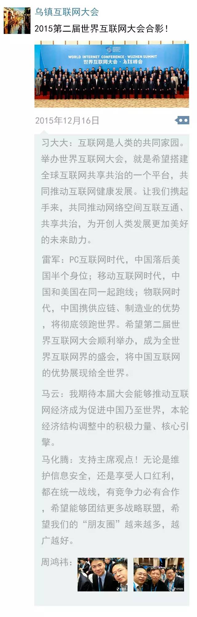 去过中美互联网大会,习大大在年底的乌镇世界互联网大会露脸了。看!中国的互联网大佬都在这儿了,这可谓是互联网最豪华阵容的合影了。