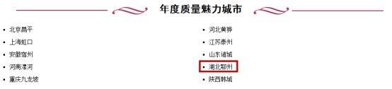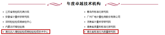 在2016年,湖北黄石市获得年度质量魅力城市;湖北黄冈质监再造行政流程打造新型质监服务体系获得年度质检创新;湖北省计量测试技术研究院获得年度卓越技术机构。
