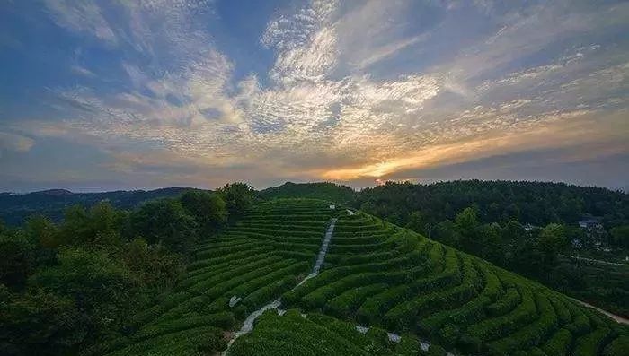 这里山水相间,茶园蜿蜒而上。这里青瓦白墙,公路盘旋绵延。一栋栋青瓦白墙木门窗的土家民居,点缀在翠绿整齐的茶园间,袅袅炊烟,嵌入白云蓝天。PM2.5?这里没听说过!