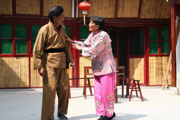 ▲国家级非遗传承人孟永香(右)与搭档雷秋胜表演恩施灯戏传统剧目《雪山放羊》。